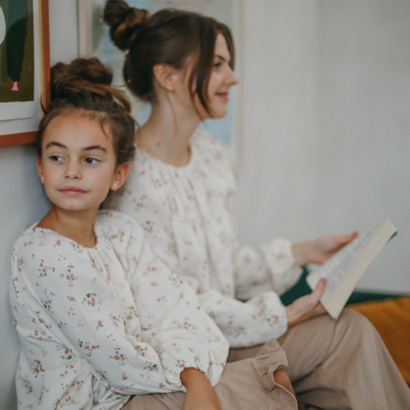 Organiskās trikotāžas kleita ar ziedu rakstu