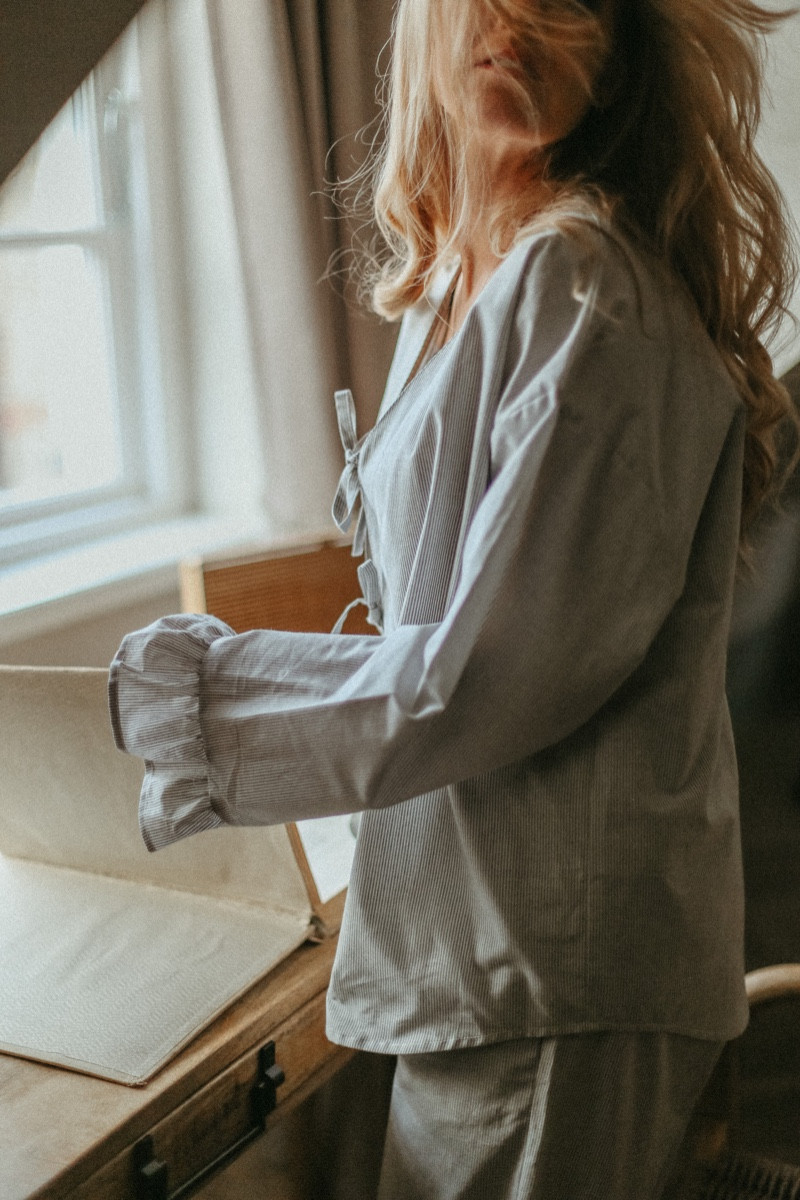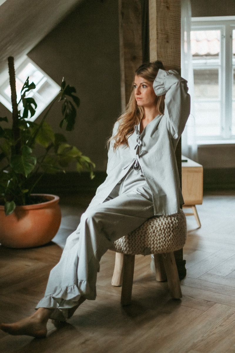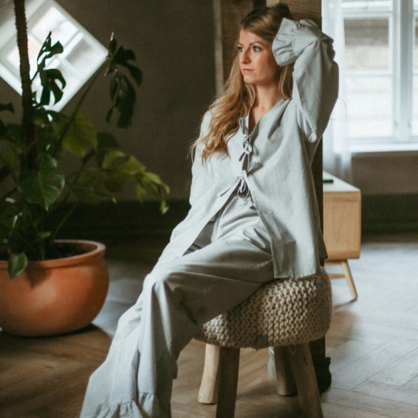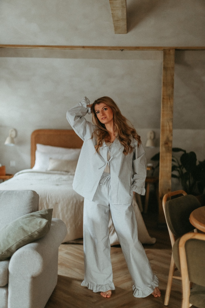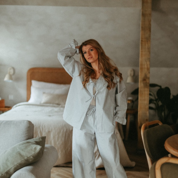 Ērts un sieviešķīgs mājas tērps - pidžamma no maiga kokvilnas auduma.