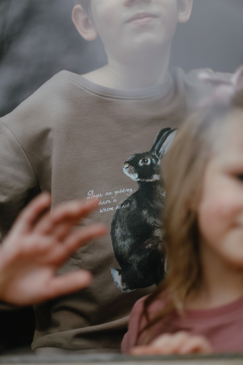Džemperis ar mīkstu, patīkamu iekšpusi un zaķa apdruku "Days are getting colder, have a warm heart".