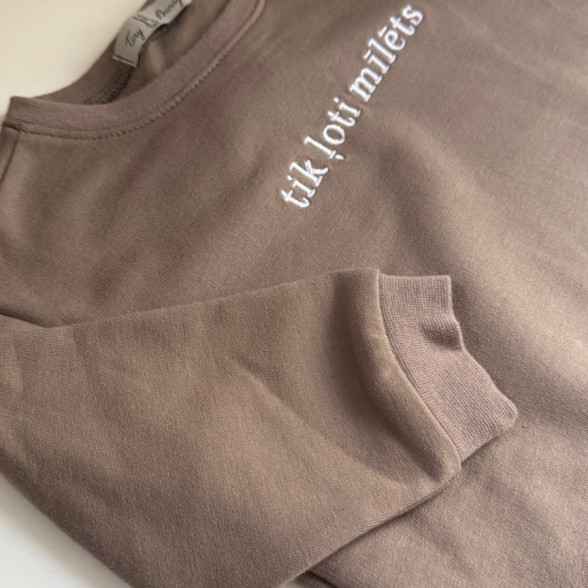 Mazuļu džemperis ar apdruku "Tik ļoti mīlēts" - brūns