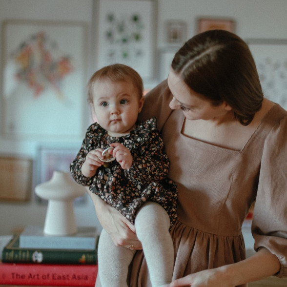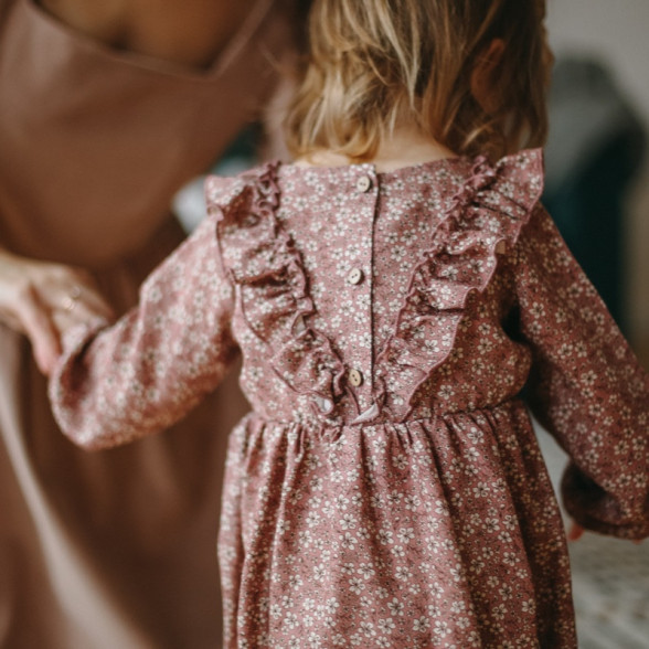 Mazuļu trikotāžas kleita ar smalku ziedu apdruku