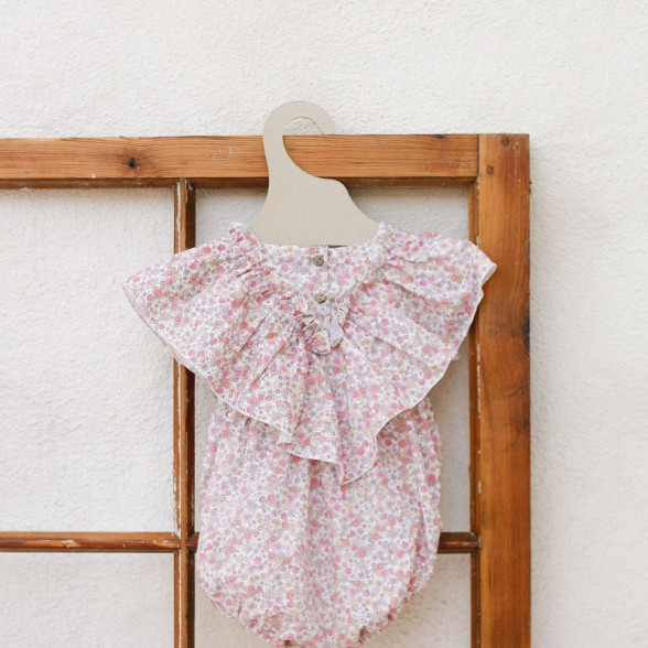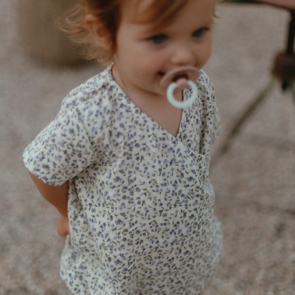 Organiskās kokvilnas wrap romperis - ziedu raksts