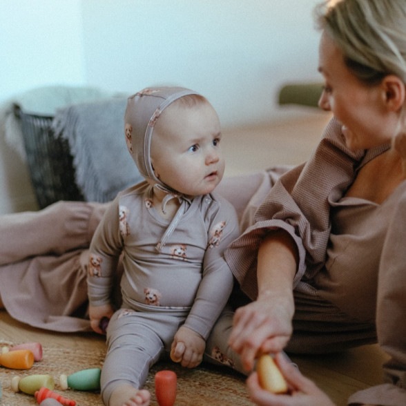 Organiskās trikotāžas cepurīte ar suņu apdruku