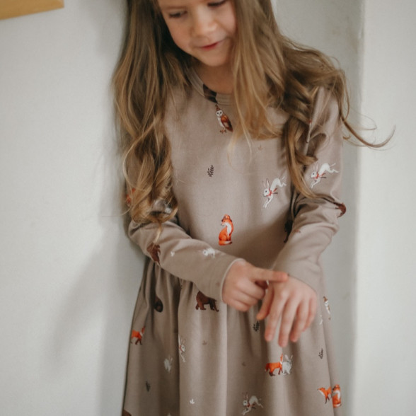 Mazuļu trikotāžas kleita ar dzīvnieku apdruku
