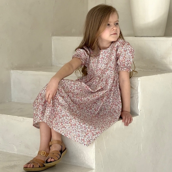 Organiskās trikotāžas kleita ar ziedu rakstu
